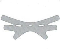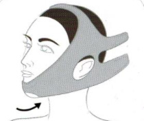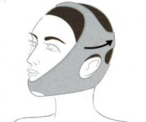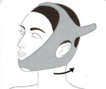 2、將醫(yī)用壓力繃帶(頭部型)的正中部放置在下巴下方,把稍寬的兩端在頭后部用魔術(shù)貼扣緊。